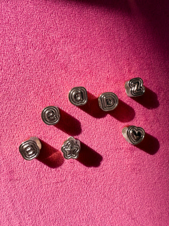 space it out, spell it out, the possibilities are endless with puffy beadz! all the iconic ruth ny puffy charms, shrunken down and drilled out, ready to slip and slide across all your chains!