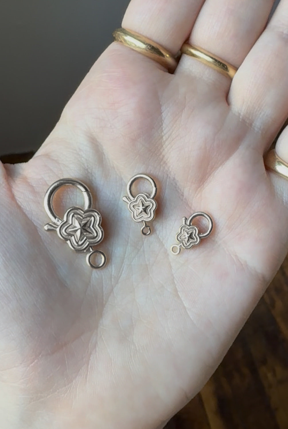 by popular demand, the cutest handmade clasp to hold all your bits and baubles! crafted in solid sterling silver, with a wide opening ring and a swivel at the bottom for maximum styling options!!