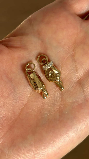 your favorite jewelry duo is back at it again! crafted in solid 14k gold or sterling silver, this good luck talisman has one of our most loved details, jewelry wearing jewelry! choose from solid metal with a puffy heart ring or upgrade to a diamond or ruby tennis bracelet! all diamonds are antique, mined, old euro cuts and sourced thoughtfully in nyc’s diamond district. fingers crossed you love them as much as we do!